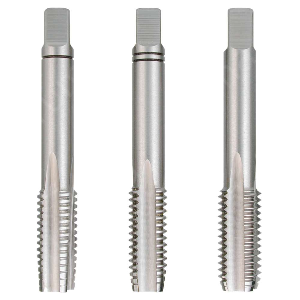 Комплект из трех метчиков ручных для метрической резьбы. Резьба нарезается в три этапа: первый метчик - 5-6 ниток на заход, второй - 4-5 ниток на заход, третий - 2-3 нитки на заход. Все три метчика изготовлены из высококачественной быстрорежущей стали (HSS). Они необходимы для создания сквозной и глухой резьбы в углеродистой и низколегированной стали с прочностью до 800 H/мм2, литой стали и цветных металлах. Шаг равен . Диаметр отверстия составляет . Общая длина равняется . Рабочая длина - .